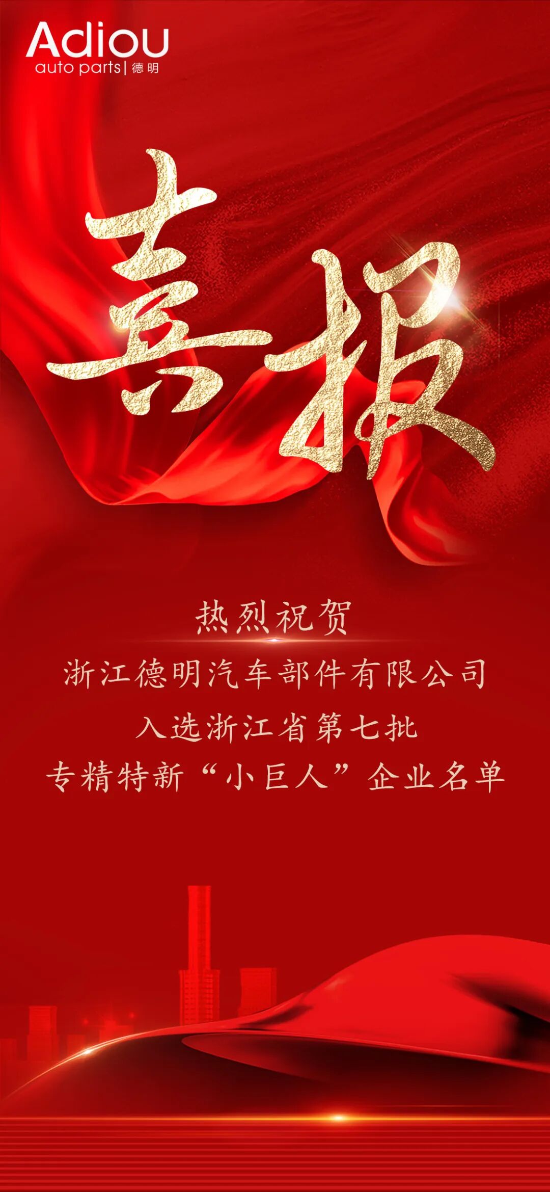 近日,浙江省经济和信息化厅发布了《关于浙江省第七批专精特新“小巨人”企业和2025年专精特新“小巨人”复核通过企业名单的公示》,浙江德明汽车部件有限公司凭借在汽车零部件领域的持续创新与专业化发展,成功入选第七批国家级专精特新“小巨人”企业名单!